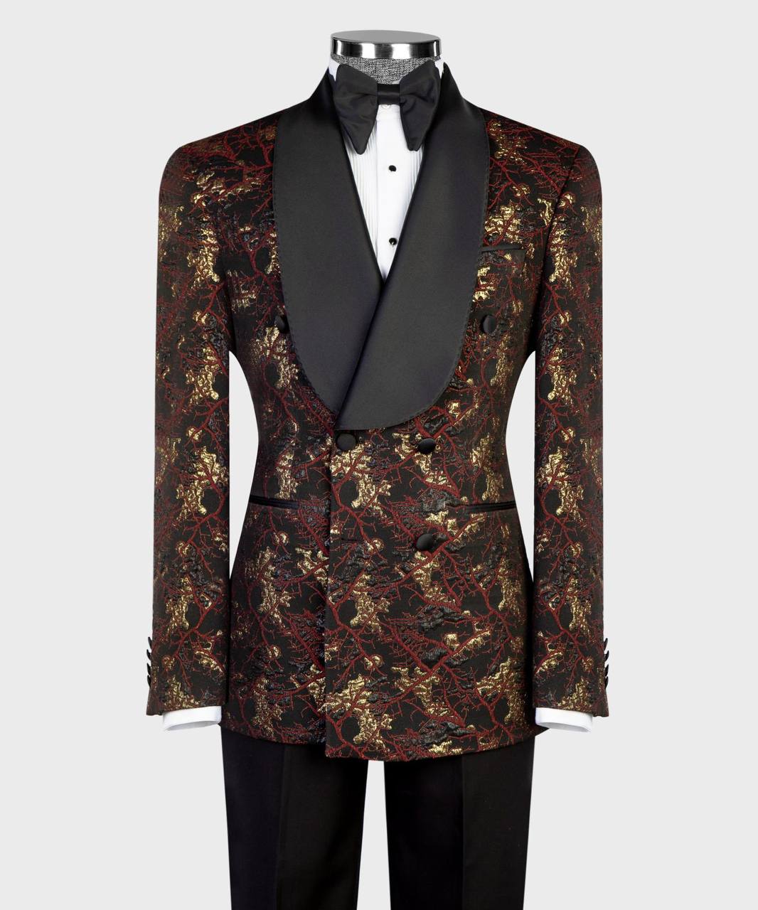 - Color: Maroon, Black & Gold Brocade (Crimson Gold)